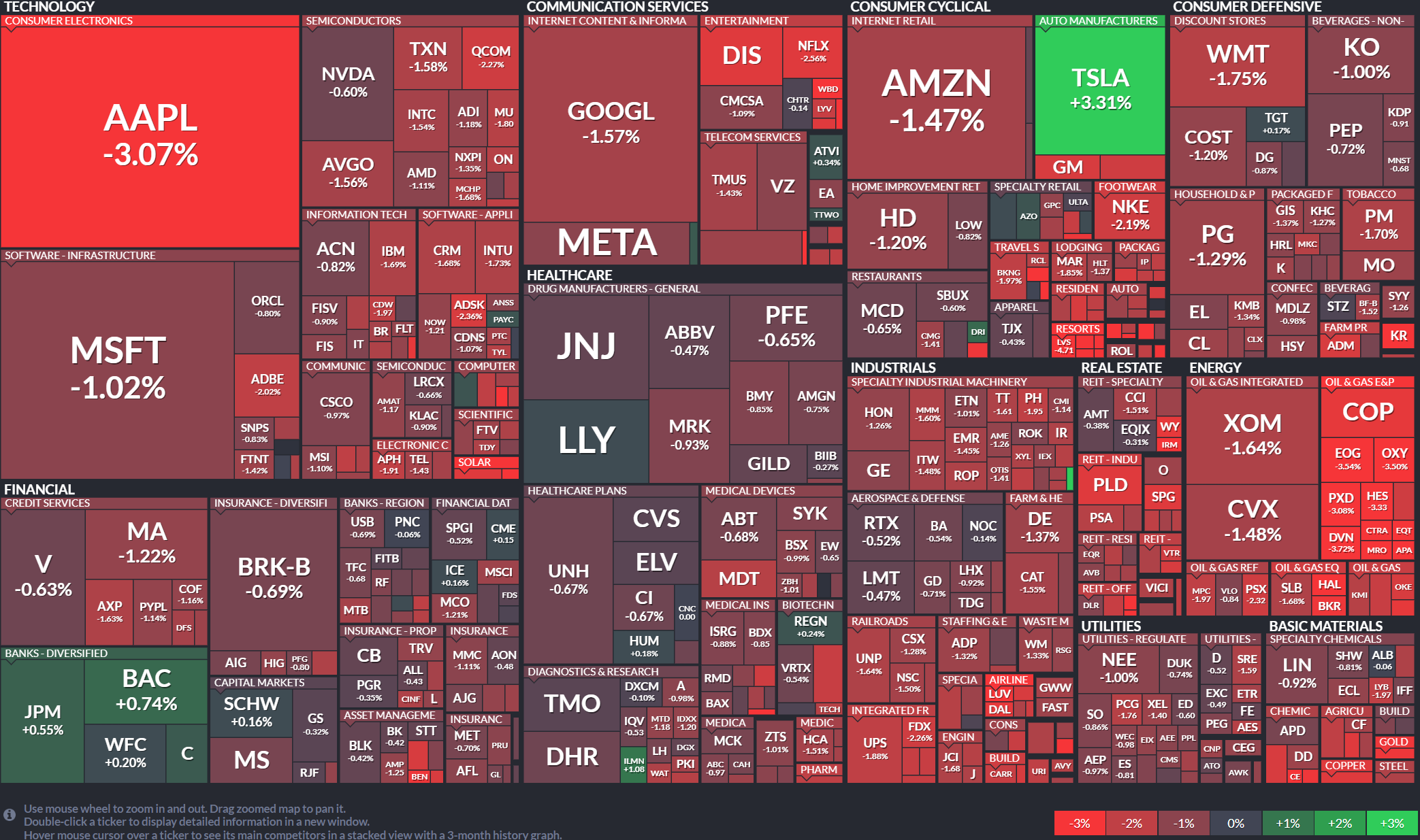 1. 다우 -1.1%,나스닥 -1.35%,S&P 500 -1.2%