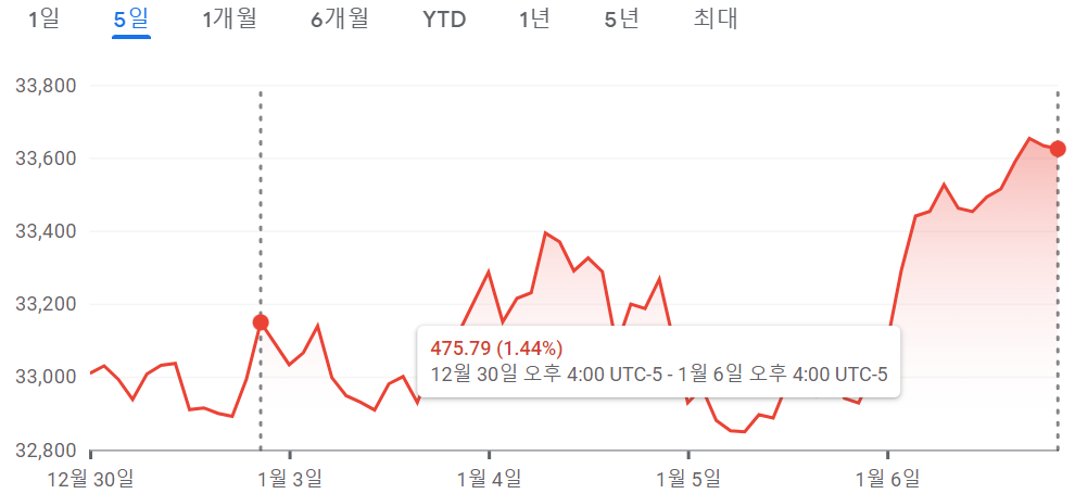 [2023.01.03~01.06] 주간 미국 증시 정리 #나스닥 0.95%↑, #S&P500 1.43%↑, #다우 1.44%↑