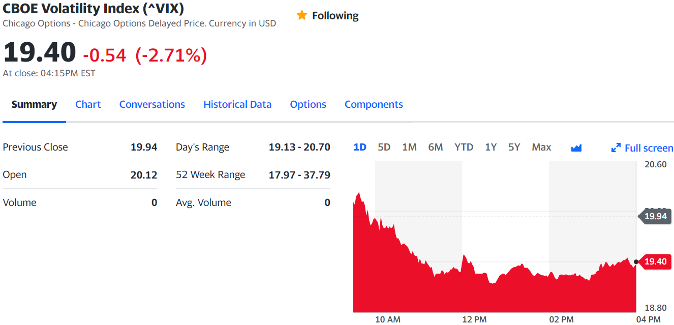- VIX 지수 20 이하 : 과매수 구간 매도 고려 (흥분 구간)