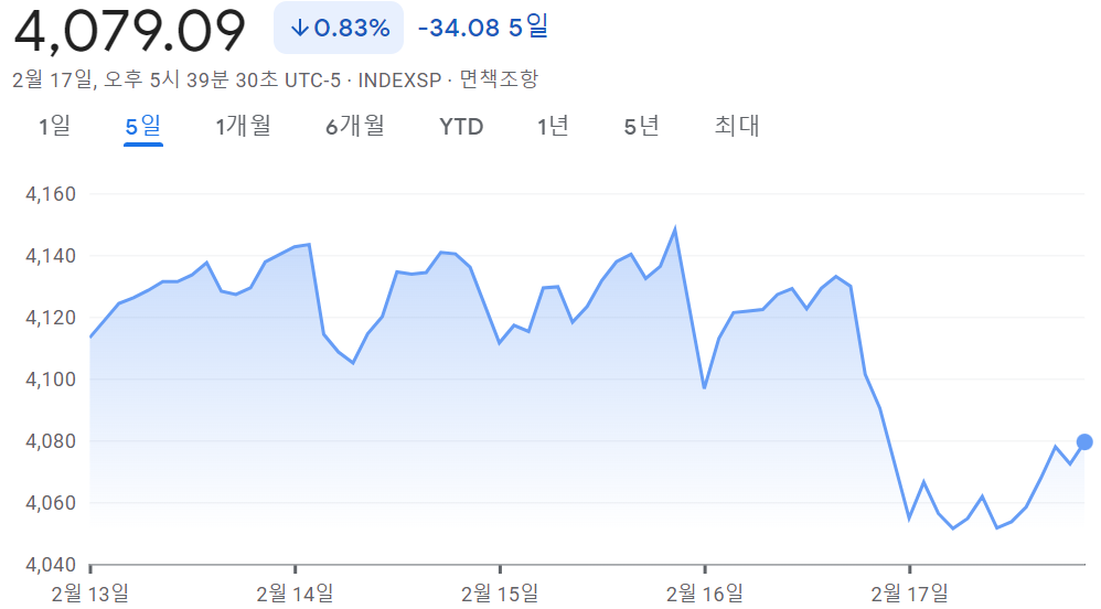- S&P 500 4,079.09 -0.83% -34.08 5일