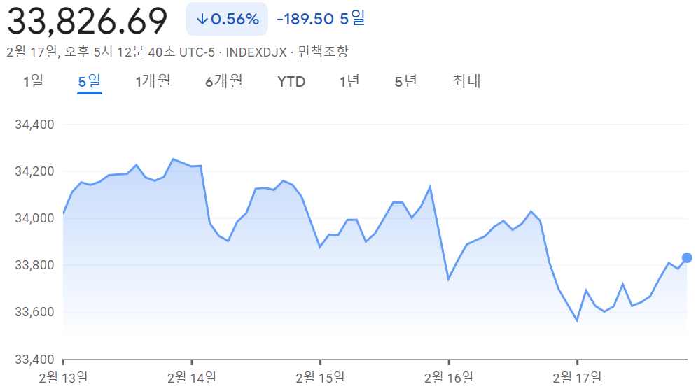 1. - 다우 33,826.69 -0.56% -189.50 5일