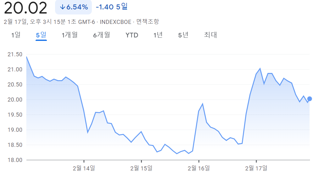 3. VIX 지수 (공포지수) : 대체로 VIX가 높아지면 주가는 폭락하는 경향.
