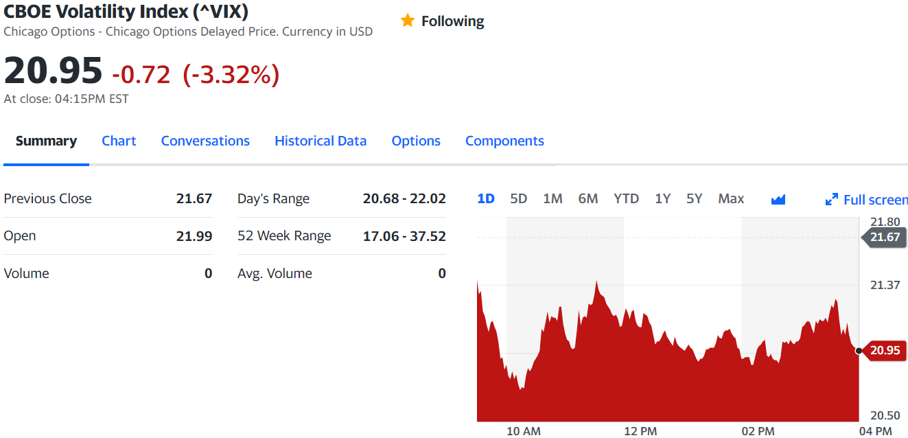 - VIX 지수 20 이하 : 과매수 구간 매도 고려 (흥분 구간)
