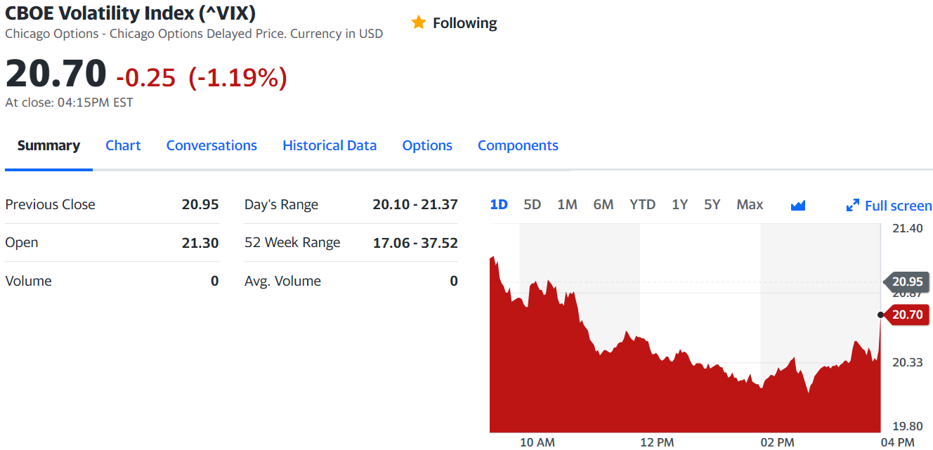 - VIX 지수 20 이하 : 과매수 구간 매도 고려 (흥분 구간)