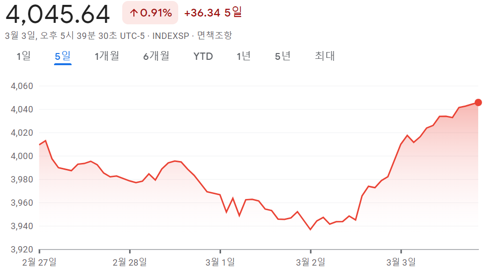 - S&P 500 4,045.64 +0.91% +36.34 5일