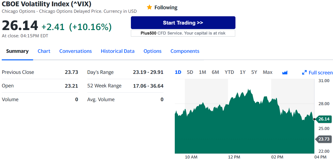 5. VIX 지수 (공포지수) : 대체로 VIX가 높아지면 주가는 폭락하는 경향.