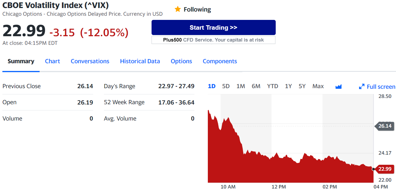 5. VIX 지수 (공포지수) : 대체로 VIX가 높아지면 주가는 폭락하는 경향.