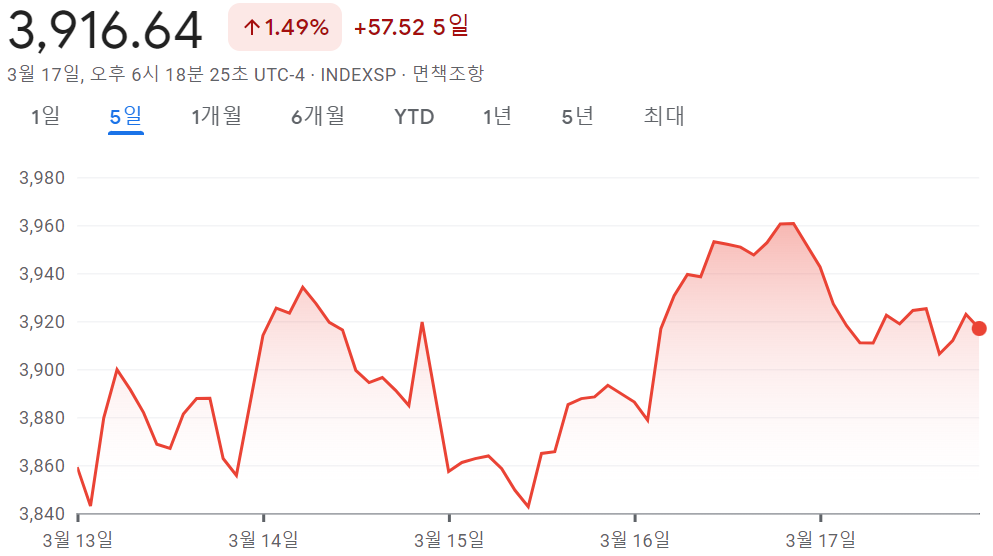 - S&P 500 3,916.64 +1.49% +57.52 5일