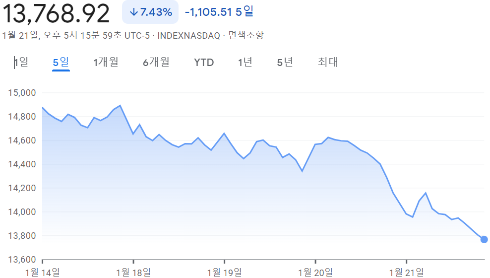 - 나스닥 13,768.92 -7.43% -1,105.51 5일