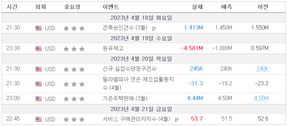 2. 금주 경제 캘린더