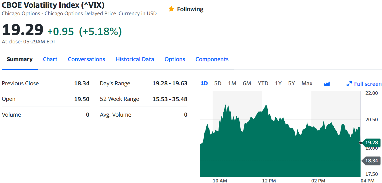 5. VIX 지수 (공포지수) : 대체로 VIX가 높아지면 주가는 폭락하는 경향.