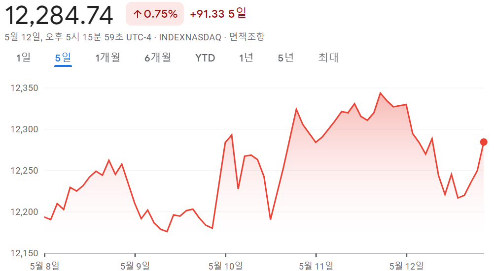 - 나스닥 12,284.74 +0.75% +91.33 5일