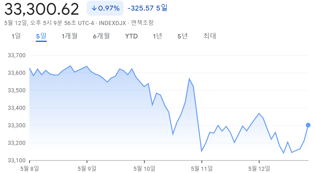 [2023.05.08~05.12] 주간 미국 증시 정리 #나스닥 0.75%↑, #S&P500 0.20%↓, #다우 0.97%↓