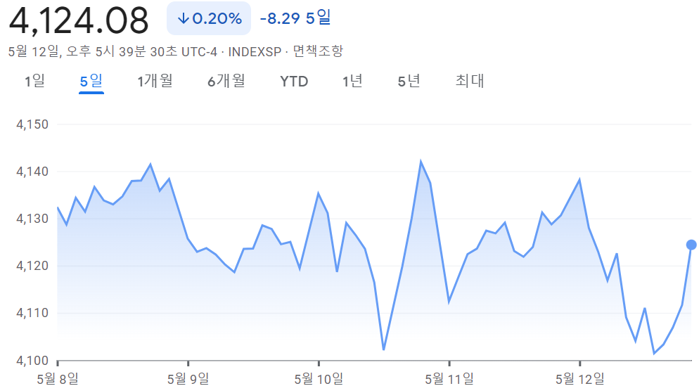 - S&P 500 4,124.08 -0.20% -8.29 5일