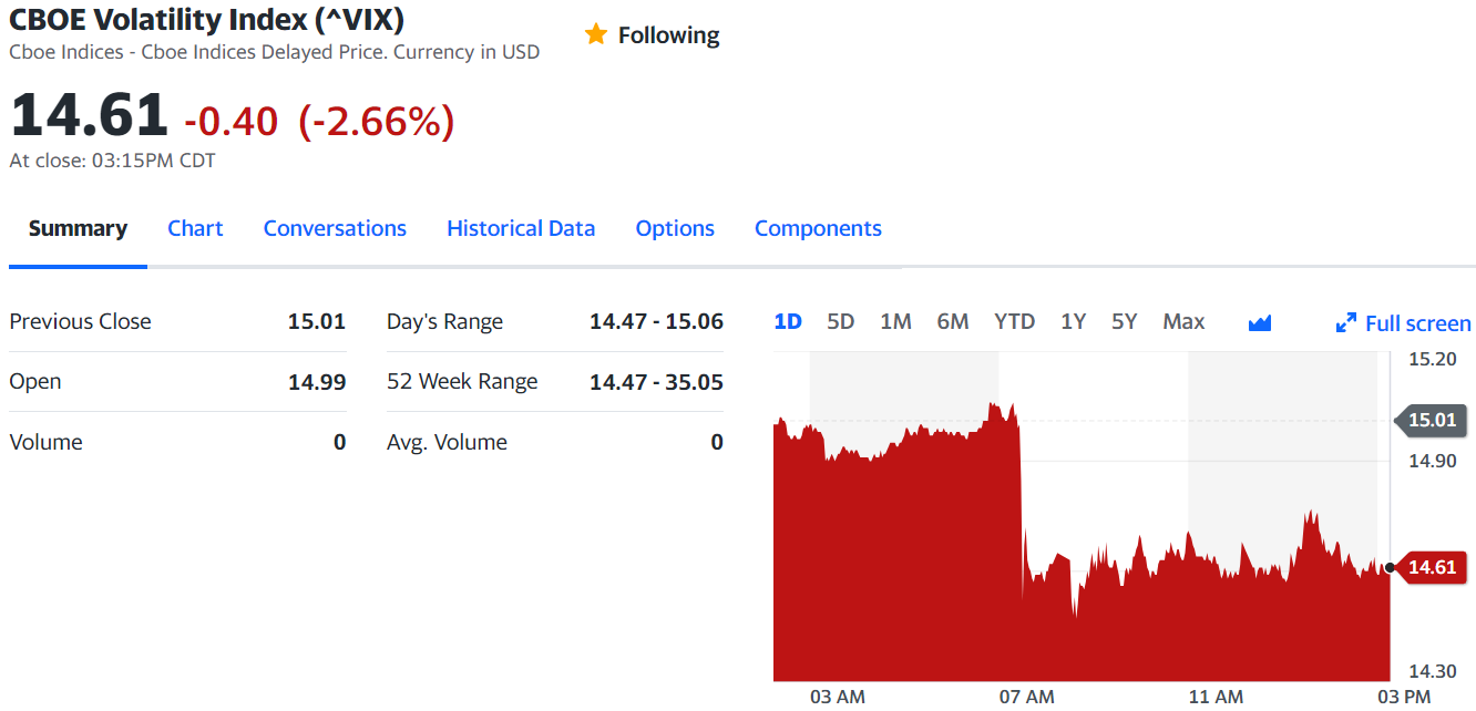 - VIX 지수 20 이하 : 과매수 구간 매도 고려 (흥분 구간)