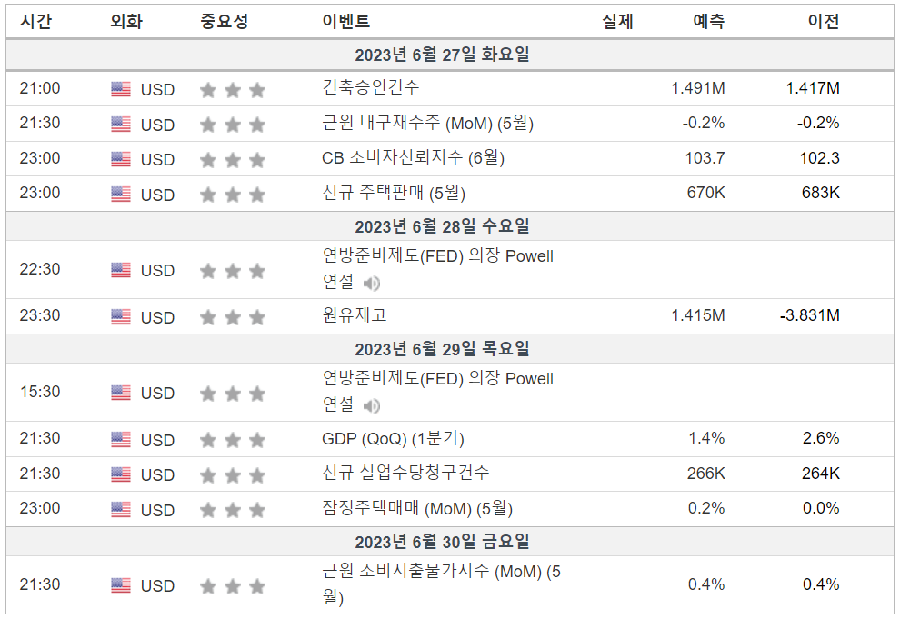 2. 금주 경제 캘린더