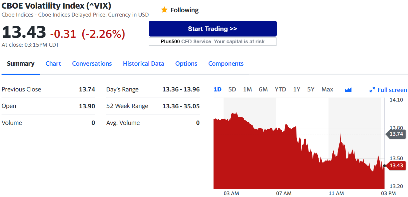 - VIX 지수 20 이하 : 과매수 구간 매도 고려 (흥분 구간)