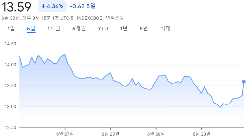 - VIX 지수 40 이상 : 과매도 구간 매수 고려 (공포 구간)