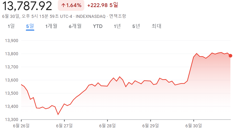- 나스닥 13,787.92 +1.64% +222.98 5일