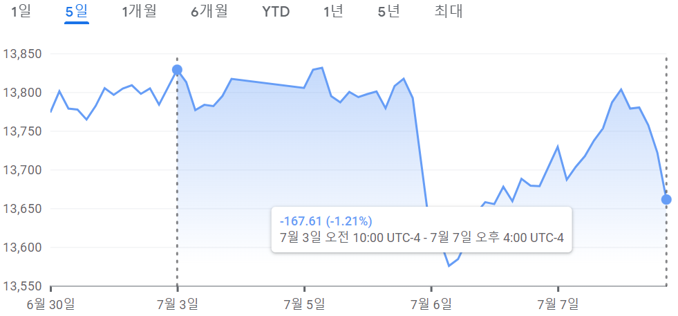 - 나스닥 13,660.72 -1.21% -167.61 4일