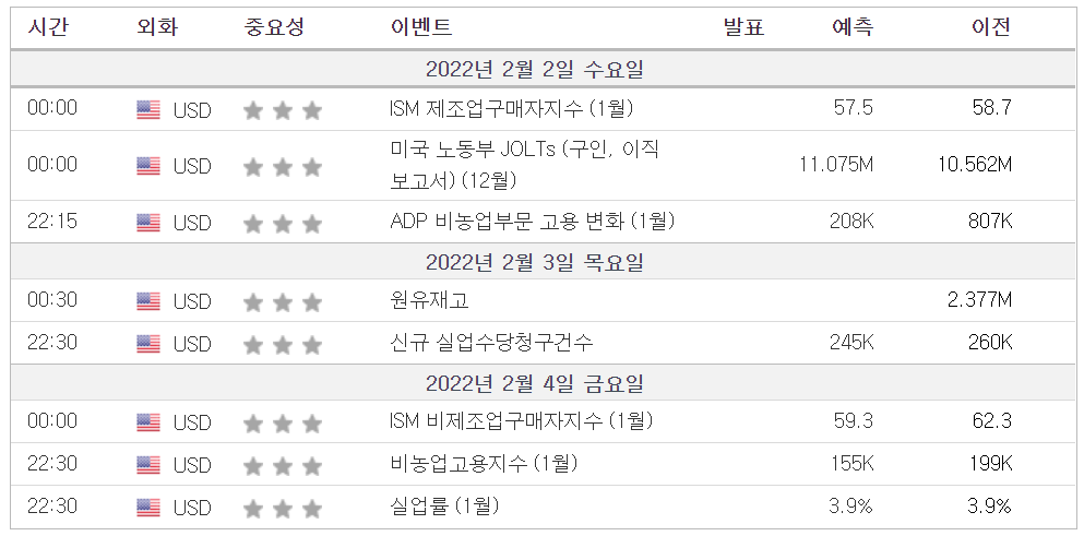 2. 금주 경제 캘린더