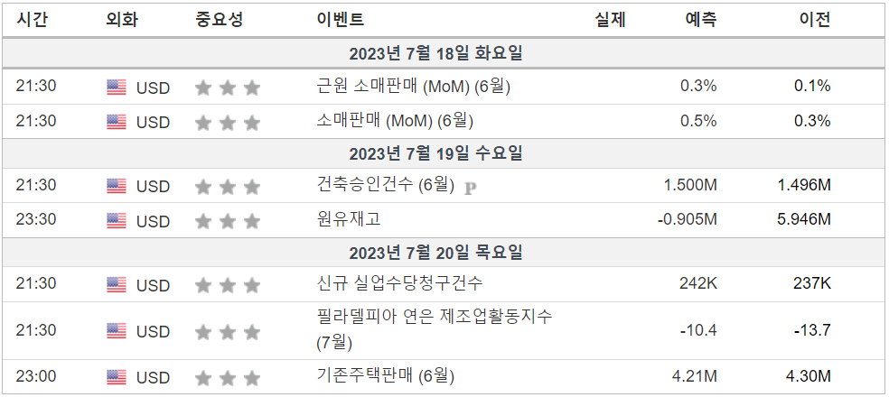 2. 금주 경제 캘린더