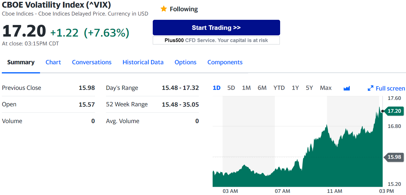 5. VIX 지수 (공포지수) : 대체로 VIX가 높아지면 주가는 폭락하는 경향.