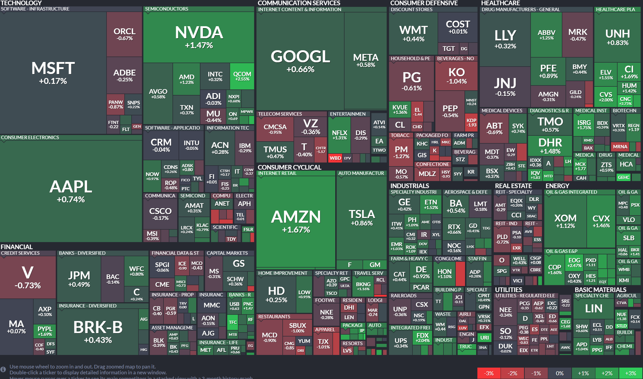 1. 다우 +0.13%,나스닥 +0.45%,S&P 500 +0.4%