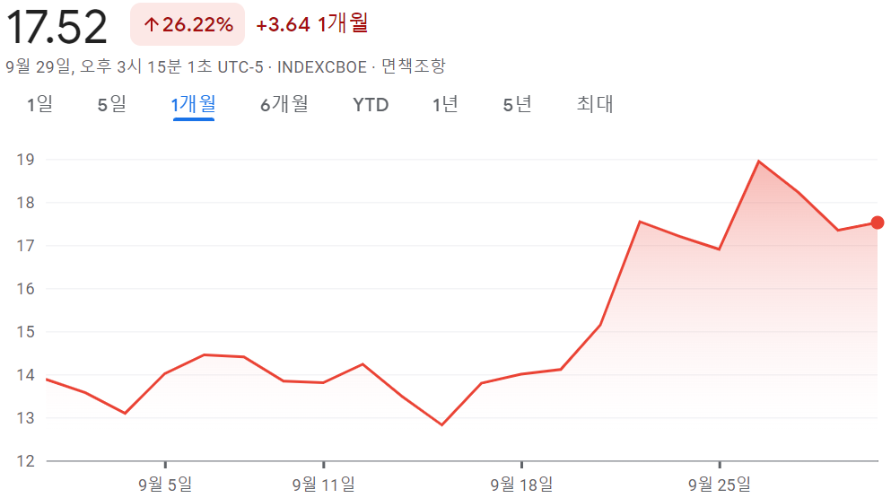 3. VIX 지수 (공포지수) : 대체로 VIX가 높아지면 주가는 폭락하는 경향.