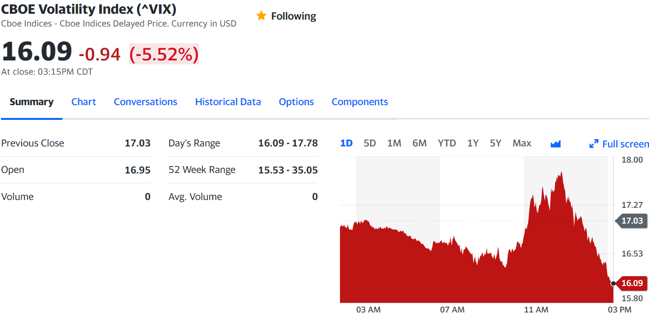 5. VIX 지수 (공포지수) : 대체로 VIX가 높아지면 주가는 폭락하는 경향.