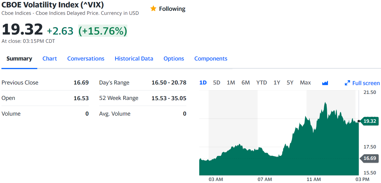 5. VIX 지수 (공포지수) : 대체로 VIX가 높아지면 주가는 폭락하는 경향.