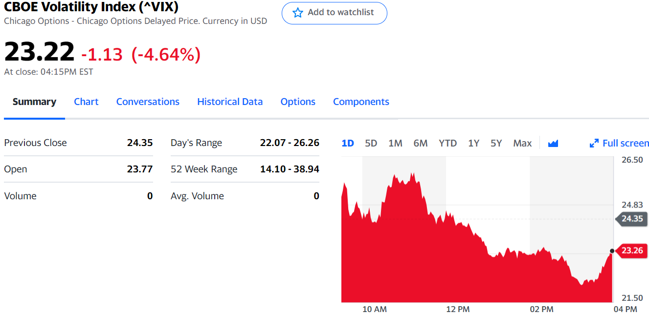 5. VIX 지수 (공포지수) : 대체로 VIX가 높아지면 주가는 폭락하는 경향.