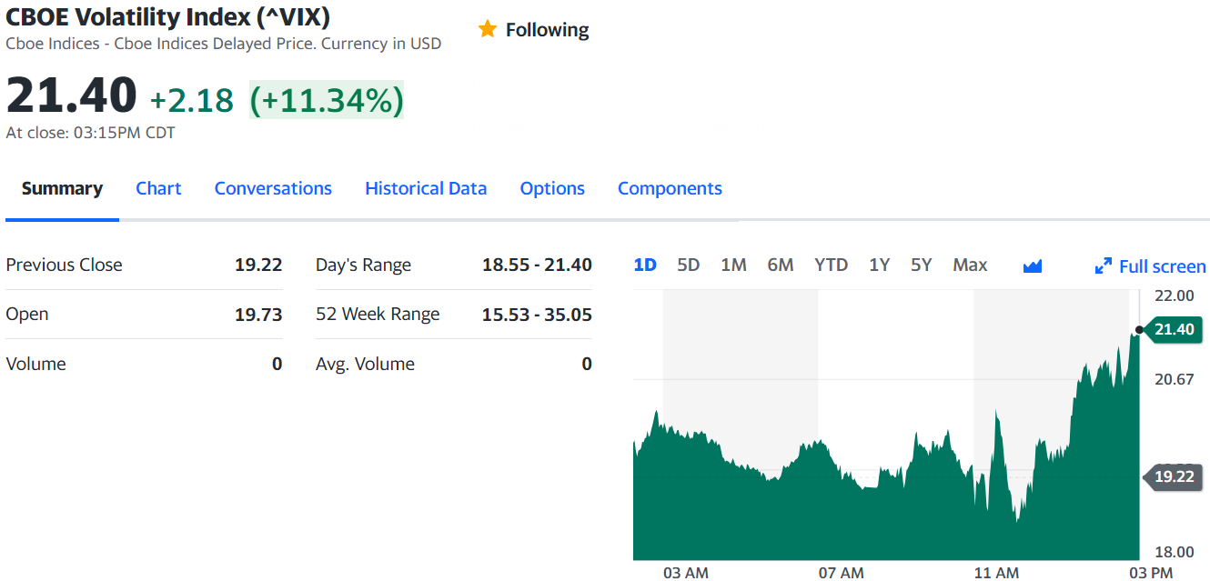 5. VIX 지수 (공포지수) : 대체로 VIX가 높아지면 주가는 폭락하는 경향.