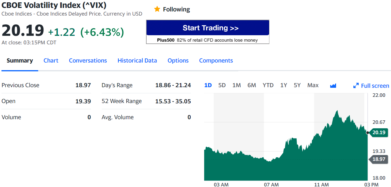 5. VIX 지수 (공포지수) : 대체로 VIX가 높아지면 주가는 폭락하는 경향.