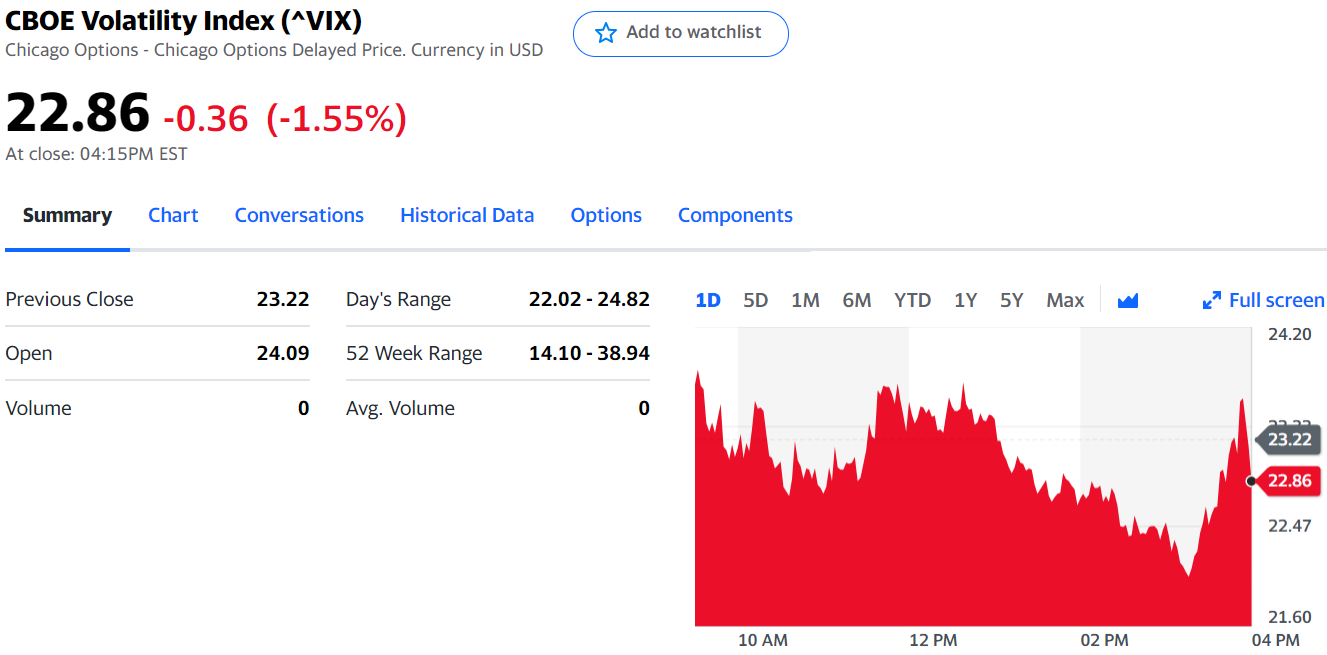 5. VIX 지수 (공포지수) : 대체로 VIX가 높아지면 주가는 폭락하는 경향.