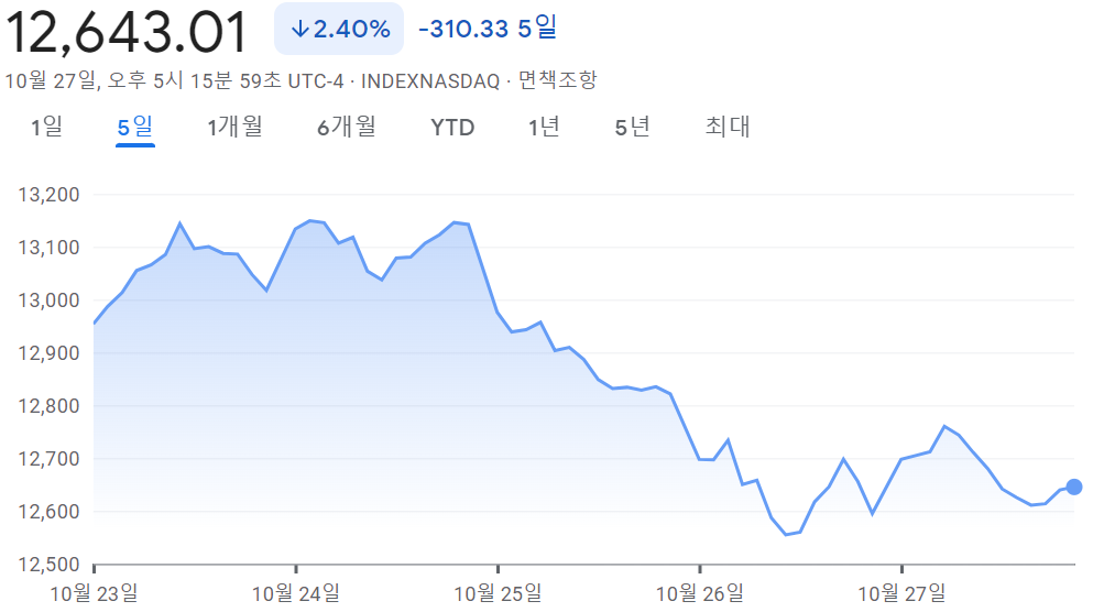 - 나스닥 12,643.01 -2.40% -310.33 5일