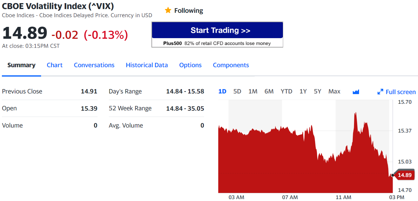 - VIX 지수 20 이하 : 과매수 구간 매도 고려 (흥분 구간)