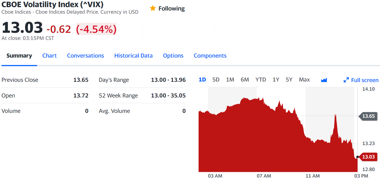 - VIX 지수 20 이하 : 과매수 구간 매도 고려 (흥분 구간)