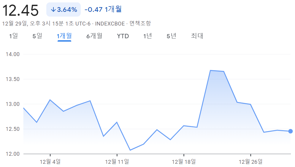 - VIX 지수 20 이하 : 과매수 구간 매도 고려 (흥분 구간)