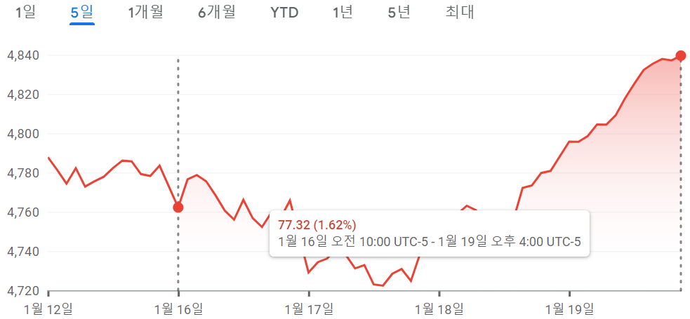 - S&P 500 4,839.81 +1.62% +77.32 4일