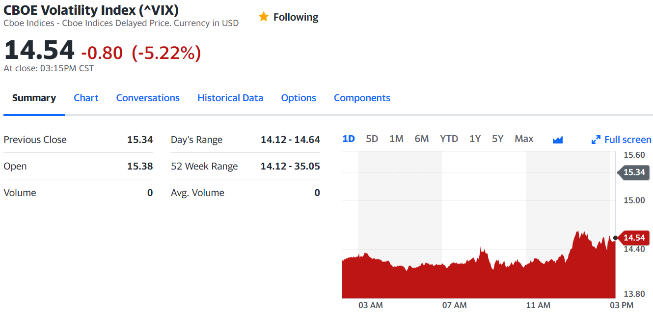 - VIX 지수 20 이하 : 과매수 구간 매도 고려 (흥분 구간)