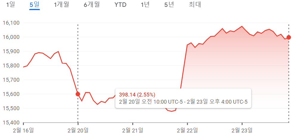 - 나스닥 15,996.82 +2.55% +398.14 4일