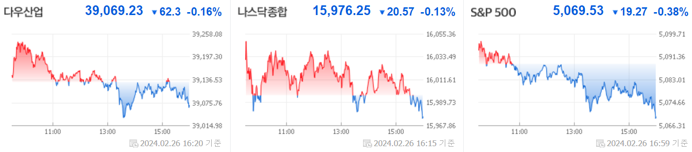 1. 다우 -0.16%,나스닥 -0.13%,S&P 500 -0.38%