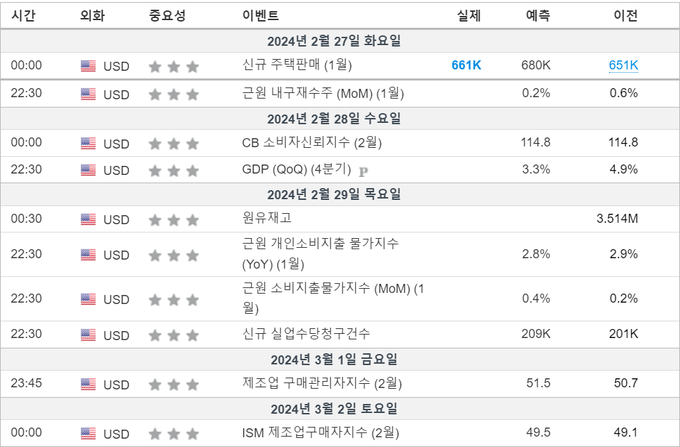 2. 금주 경제 캘린더