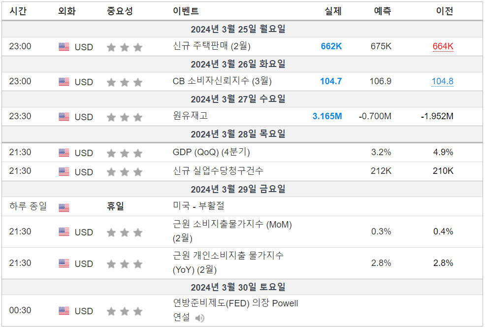 2. 금주 경제 캘린더