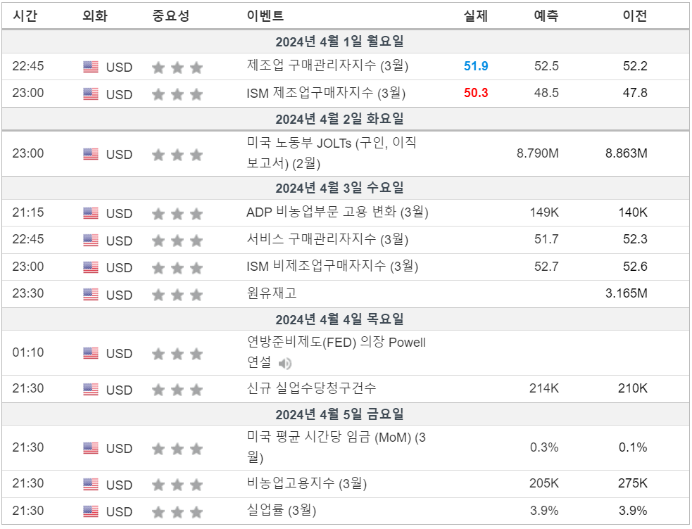 2. 금주 경제 캘린더