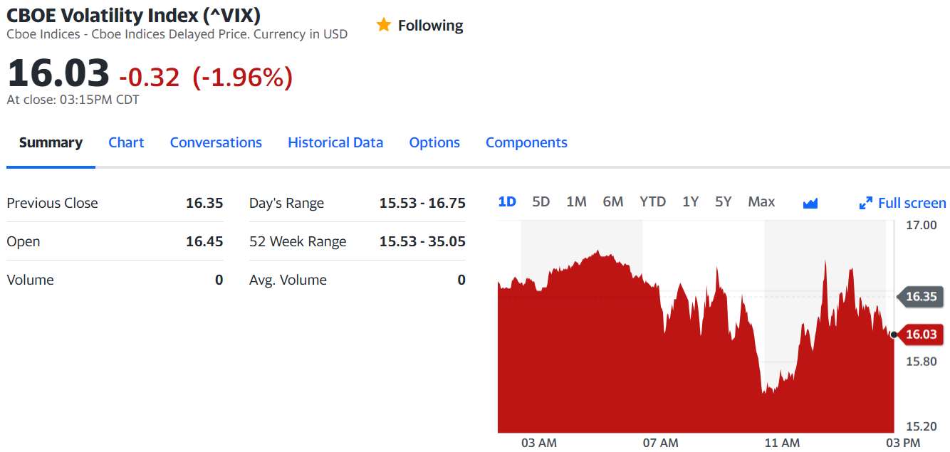 - VIX 지수 20 이하 : 과매수 구간 매도 고려 (흥분 구간)