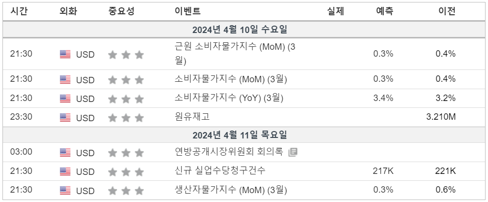2. 금주 경제 캘린더