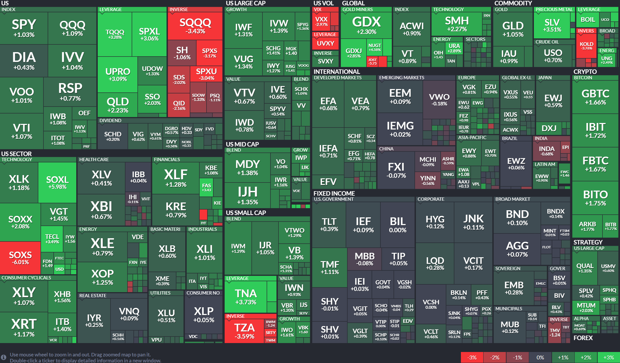 1. 다우 +0.46%,나스닥 +1.19%,S&P 500 +1.03%