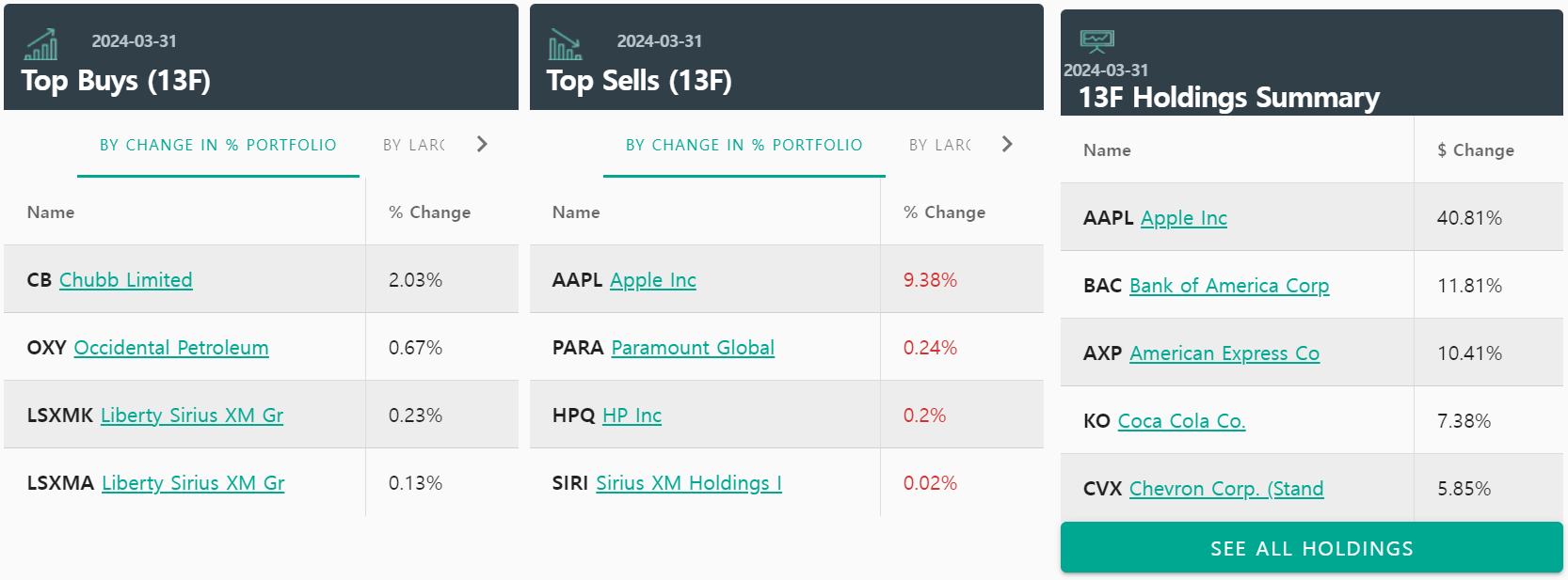 24년 1분기 13F 공시 현황
